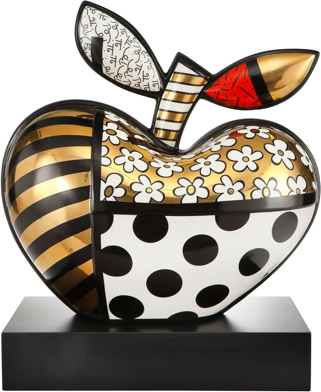 La scultura Golden Big Apple di Goebel, firmata dall’artista Romero Britto, è una raffinata opera in porcellana che esprime in pieno il suo stile vivace e ottimista. Britto, noto per la sua combinazione di cubismo e pop art, ha trasformato una semplice mela in un’opera d’arte moderna e colorata. La Golden Big Apple si distingue per i suoi colori brillanti e le forme audaci, caratteristiche tipiche del lavoro dell’artista brasiliano, che mira a trasmettere messaggi positivi di amore, speranza e felicità attraverso le sue opere.